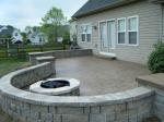 04/01/2011 This project started with the removal of the original 12’ x 12’ concrete pad, which was replaced by a new, 410 sq. ft. stamped concrete patio. The new patio was free form shaped and includes a dedicated fire pit, with seat walls between columns at each points of entry into the yard. The caps on the columns are custom designed to mimic the slate pattern used on the patio. The fire pit also includes a removable cast iron grate. A thin line, notched, ashlar stamp with a sand buff color and grey grouting were used on the patio and column cap. The seat walls and fire pit is highland free standing wall in a rock blend color by Pavestone.